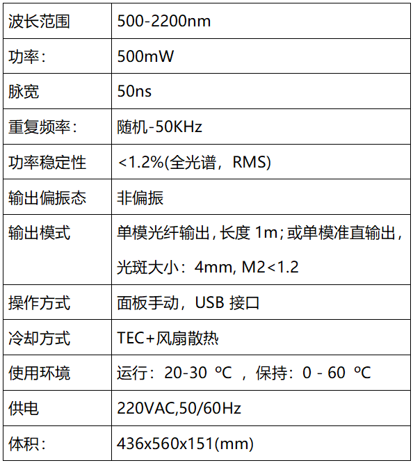 NO.1、皮秒超連續譜激光器FYLA SCT