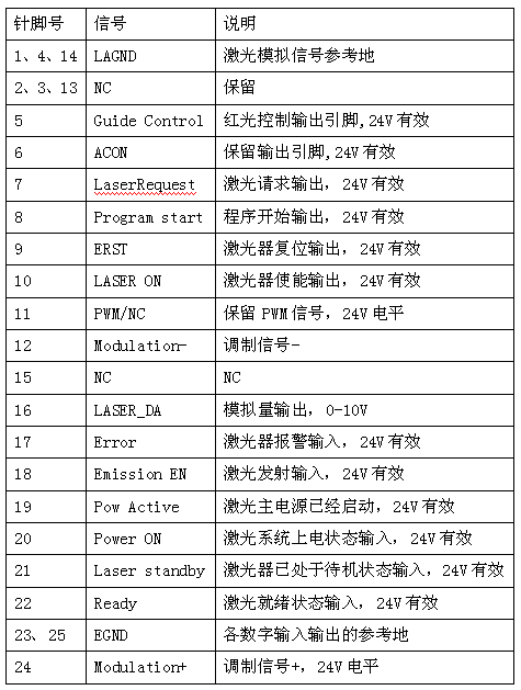 激光電源控制端口引腳定義: