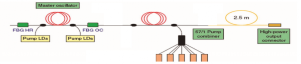 光纖激光器主要由泵浦源、增益介質(有源光纖)、諧振腔三大部分構成。