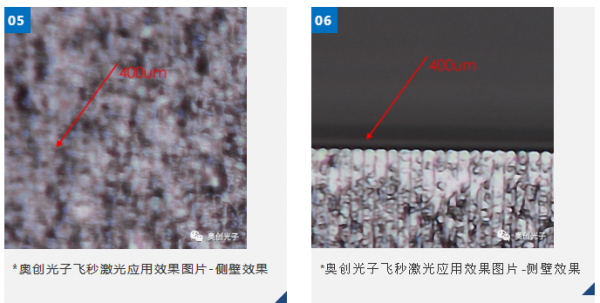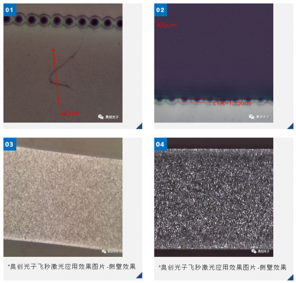 奧創光子針對市場已有的UGC皮秒切割,使用飛秒激光器進行切割實驗。
