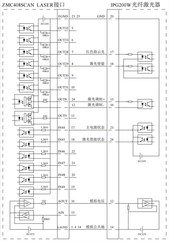 2.ZMC408SCAN控制器LASER激光電源接口功能: