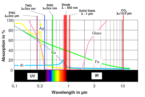 鋼鐵對綠光的吸收率達50%(對紅光約為38%)