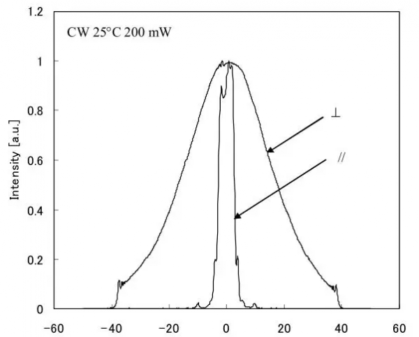 幾種已知的方法來實現(xiàn)一個小型激光顯示器。其中一種我們稱之為鏡面掃描法。該方法利用MEMS反射鏡對準直激光束進行掃描。屏幕上的激光束光斑被快速移動掃描鏡像并形成鏡像。在掃描過程中,每種顏色的激光功率被調(diào)整為用a表示一個像素正確的顏色。這種方法需要在屏幕上有一個小光束點。因此,單側(cè)模和衍射受限激光輸出優(yōu)先。在這項工作中,我們采用窄脊條紋結(jié)構(gòu)的紅色LD來控制橫向模式。