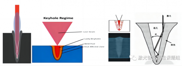 激光焊接按焊接過程的吸收率來分主要有兩種,一種是熱導(dǎo)焊(深寬比<1,激光吸收率紅光在20%以內(nèi),不同波長有差異)、一種是深熔焊(深寬比>1,吸收率大于材料熔池吸收率,60%以上,主要是有匙孔內(nèi)的激光多次反射吸收)。