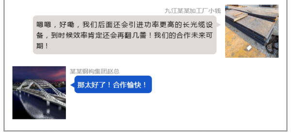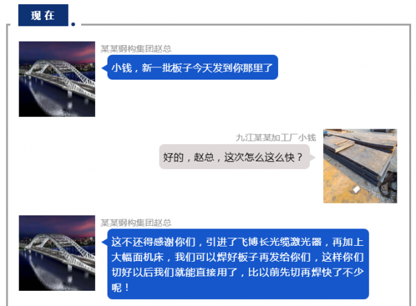 鋼橋構件的加工,流程復雜且要求高,在鋼橋構件加工之前,需要選擇合適的切割和焊接設備,使加工之后的各個橋梁部件都能精準無誤的相互銜接。 日前,飛博激光市場、銷售、售后聯動團隊走訪了位于潯陽城-九江的終端用戶,他們的加工對象為大幅面鋼橋構件。 ▲ 終端用戶現場 由于對中厚板加工的迫切需求,以及在加工方式上激光替代等離子、火焰等切割工藝的迫切需求,該終端一年內上了多臺激光設備,最具代表性的當屬20000W和30000W。 ▲ 20000W 幅面長28m 先引進的是20000W的設備,加工一段時間后發現幅面和長度都需要升級來滿足加工需求。因此,隨著業務量進一步成熟,引進了超長光纜的30000W激光器設備。 ▲ 30000W 幅面長70m 據現場工作人員介紹,此臺設備的引進,大大解決了此前應用方面的痛點問題。 首先,是加工效率問題。因為行業特性,所加工的板材尺寸普遍較大,未引進大幅面機床之前,每完成一張板的切割,都需要停機,再換板,大大增加的加工工時,成本一直降不下來。上了70米地軌大幅面之后,又得到了飛博激光30000W激光器50米超長光纜的加持,可以同時放置多張板材,大幅面空間足夠,加工換板不停機,單日加工數量大大提升。 ▲ 70米大幅面切割機床 其次,根據實際應用的需求,大量的工件要兩塊金屬板拼接后使用,以往的操作都是需要切割好孔位之后,用戶再回去進行焊接拼合,既要對準孔位,又要防止焊接過程產生熱效應發生形變等一系列問題的發生,效率極其低下,有過5天僅拼合8張板的“記錄”。引進大幅面長光纜的黃金CP后,用戶可以先進行焊接工序,拼合后的板材長度超過了18米,在黃金組合的機床上也能輕松實現批量切割。焊后切,裝配精度高,減少了材料運輸成本,大大提高了加工效率。超長光纜的前提必須是應用性能的保證,這個痛點問題的妥善解決真正讓用戶體會到了飛博激光超長光纜高附加值產品帶來的實際意義。 以前 現 在 從2021年開始,飛博激光便陸續推出了“專業光譜控制”、“更亮的光、更純的光、更長的光”等一系列概念和標語,陸續被市場所接受,當然也出現了一些不解和質疑的聲音:長光纜有什么實際意義?我們也用不到這么長的光纜,光纜長了會不會影響激光器本身的性能等等。 但事實又是如何呢?市面上常見萬瓦高功率的光纜長度普遍在20米,最多達到30米,減去機床橫軸需要的“公攤”長度后,能夠實現的加工長度在10米左右,在大型鋼橋構件的加工場景中,這顯然是不能令人滿意的。 經過市場的考驗和證明,飛博的長光纜已經在多個應用領域得到了獨特的應用,很大程度解決了應用場景受限的問題。 因此: 用事實說話 —— 超長光纜有切實有效的使用意義! 用事實說話 —— 細纖芯,長光纜,還能切得又快又好! 用事實說話 —— 70m超大幅面搭配50m超長光纜,效率提升不止億點點!