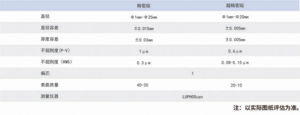 非球面模壓規(guī)格表