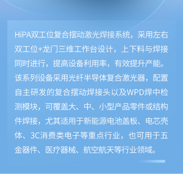 HiPA雙工位復(fù)合擺動(dòng)激光焊接系統(tǒng)