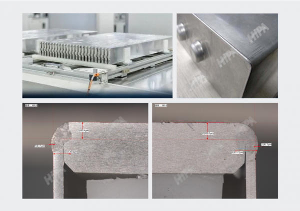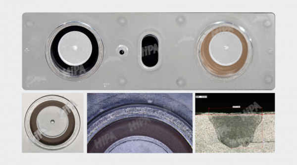針對(duì)汽車動(dòng)力電池蓋板防爆片、極柱激光焊接易炸火的問(wèn)題,以及電芯殼體滿焊易出現(xiàn)虛焊、炸火、氦檢漏氣等問(wèn)題,目前市場(chǎng)上所采用的復(fù)合焊、環(huán)形光束可調(diào)激光相比單光纖激光焊接良率有較大提升,但仍然存在一定概率炸火和氦檢漏氣。HiPA雙工位復(fù)合擺動(dòng)激光焊接系統(tǒng)兼具光纖擺動(dòng)焊接、半導(dǎo)體復(fù)合焊接優(yōu)勢(shì),最大限度減少焊接炸火概率,同時(shí)對(duì)產(chǎn)品裝配精度有很高的兼容性,有效提高外觀成型質(zhì)量,提升氦檢良率。