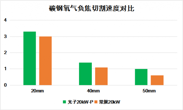 1、與常規20kW激光器相比,20kW-P激光器可實現50mm碳鋼氧氣批量穩定切割,且速度提升可達35%。