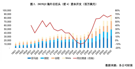 根據(jù) LightCounting 預(yù)測(cè),全球以太網(wǎng)光模塊市場(chǎng)將在 2024 至 2029 年間保持約 22% 的年復(fù)合增長(zhǎng)率,預(yù)計(jì)到 2030 年市場(chǎng)規(guī)模將突破 350 億美元。AI 基礎(chǔ)設(shè)施建設(shè)成為推動(dòng)增長(zhǎng)的關(guān)鍵動(dòng)力——僅 2025 年第二季度,微軟、亞馬遜、meta 和谷歌四大云廠商的資本支出同比增長(zhǎng)近 70%,顯著拉動(dòng)了 800 G 及更高速率光模塊的需求。美國(guó)作為全球最大光模塊需求市場(chǎng),占據(jù)約六成份額,其 AI 數(shù)據(jù)中心的持續(xù)投資進(jìn)一步加速了高端光模塊的應(yīng)用擴(kuò)展。