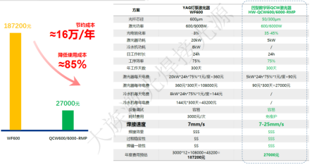 對(duì)比傳統(tǒng)的高功率YAG激光器,光電轉(zhuǎn)換效率提升至40%左右,在滿負(fù)荷工況下使用成本降低85%。相較于常規(guī)環(huán)形光激光器,平均功率僅為其10%,能耗低至30%,在實(shí)現(xiàn)高性能焊接的同時(shí)踐行綠色制造理念。