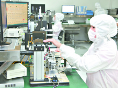 圖為河南仕佳光子科技股份有限公司工作人員在做芯片測試 鶴壁日報記者 李雪婷 攝我們的DFB激光器芯片已經研制成功,預計下半年可...