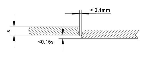 一般來說,各個不銹鋼側(cè)板的搭接精度必須滿足縫隙值小于0.1mm,偏差值小于板材厚度的0.15倍。如圖二所示。
