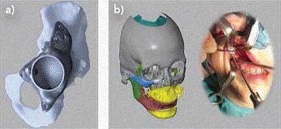 圖4:a)個性化的整形植入物通常是用鈦生產的,并具有精細的幾何表面,非常有助于表面形狀的修復。b)在一個整形植入物中集成了一個鈦金屬表面層結構,其有助于表面形狀的恢復,且易于植入手術操作。