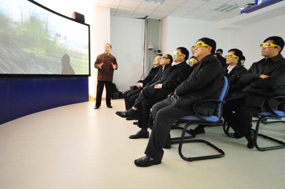 參觀新松公司立體寬屏無縫拼接3D激光演示