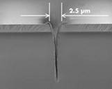 圖2. 氮化鎵-藍寶石晶圓激光劃片的切口寬度2.5微米。