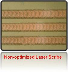 圖7. JPSA薄膜太陽能電池優(yōu)化劃片(左)與非JPSA薄膜太陽能電池劃片(右)的比較
