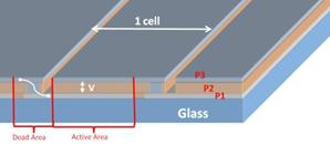 圖6. 薄膜太陽能電池的P1、P2、P3三層材料需要多光路激光劃片系統(tǒng)先后進行三次劃片
