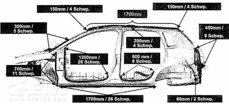 在上海大眾的產品系列中,車身使用激光焊接的產品包括帕薩特、POLO以及途安。帕薩特車身的激光焊接長度約4.1米、POLO的接近6.6米而途安車身的激光焊接長度為41米。