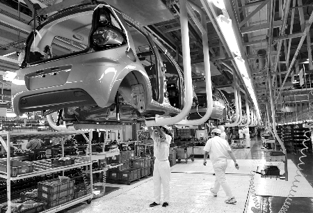長安集團員工正在組裝汽車。長安集團將在昆明進行汽車整車、發動機研發制造。 (資料圖片)
