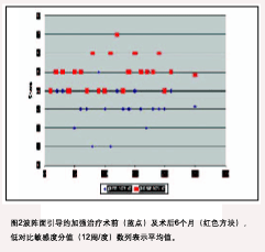 隨著屈光手術的普及和數量的增加,手術醫生不可避免地會遇到術后患者視覺滿意度較差的問題。這些問題包括欠矯或過矯、偏中心切削、以及可導致“鬼影”癥狀 和夜間視覺問題的小光區切削。2-11對于這些病例,屈光手術醫生承擔著改善這些視覺主訴,以及可能做加強治療手術的艱巨任務。現代波陣面攝取系統以及波 陣面引導系統的問世,圖2波陣面引導的加強治療術前(藍點)及術后6個月(紅色方塊),低對比敏感度分值(12周/度)數列表示平均值。
