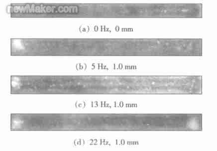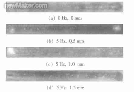 2. 1 光束擺動對激光焊接氮氣孔的影響圖2 所示的是不同擺動規范下激光焊接焊縫氮氣孔情況(X 射線透視圖) 。由圖2 可以發現,光束擺動可以起到消除氮氣孔的作用,在其它條件不變的情況下,隨著擺動頻率的增加,焊縫中的氣孔減少。