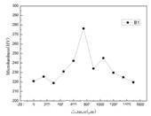 調整參數后進行第二次焊接可以得到如圖六的結果,由圖六可以看到焊道同樣呈現上寬下窄的特性,同樣有完全貫穿的現象。將其以放在硬度計上測試焊道整體橫向硬度,可以發現如圖七的結果,焊道的硬度高于母材料,因此可推估焊道強度應高于原母材。