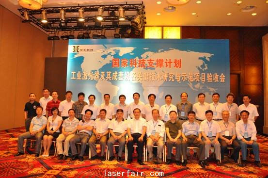 驗收專家組聽取了項目組工作報告、審閱了相關驗收資料、考察了項目技術研發及產業化生產現場。經質詢與討論,認為,所提供的驗收資料齊全、規范,符合項目驗收要求;完成了任務書要求的4種激光器、8種新型激光設備及4個應用示范基地的各項技術指標。獲得科技鑒定成果17項,申報國家專利68項(已獲授權34項),申報國際專利2項,發表論文59篇,研究成果具有創新性。攻克了氣體流動與交換、光腔結構、射頻激勵、光子暗化、側邊耦合、聲光調制等關鍵技術。開發了高功率軸快流CO2激光器、射頻板條CO2激光器及系列光纖激光器,填補了國內空白,部分指標達到國際一流水平,提升了我國激光產業的核心競爭力和國際地位。開發了大幅面數控激光切割機、激光拼焊設備和系列激光精密微細加工機等8種激光加工裝備,提升了我國高端激光加工裝備的制造能力。開發了17項新產品,建立了4個示范基地,實現了產業化,經濟效益和社會效益顯著。引進了國家千人計劃人才2名,培