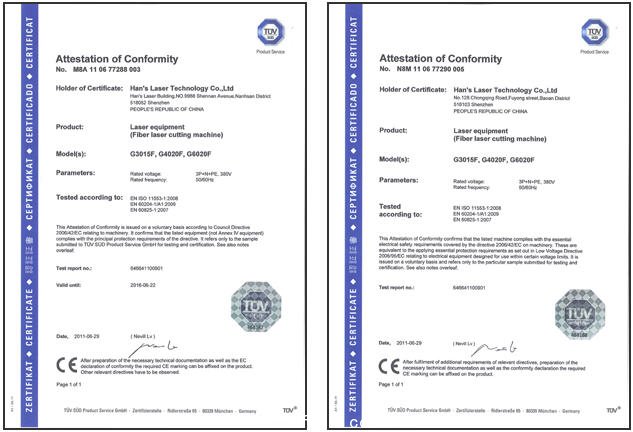 大族激光的G3015F、G4020F、G6020F系列光纖激光切割機和CST系列2200W、3300W、4200W CO2激光器順利通過CE認證。首批銷往美國和德國的設備將于7月底發出。
