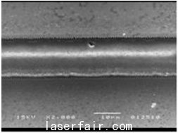 該圖是通過掃描電子顯微鏡拍攝的。圖片顯示了通過超快脈沖激光產生的微通道。
