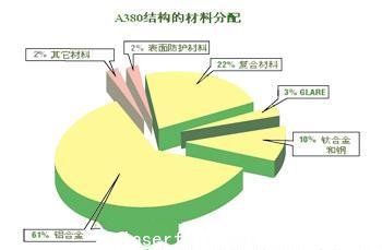 從空客A380選材的分布來看(圖1),鋁合金占的比重最大,達機體結構重量的61%,因此要實現性能改進,必須開發創新的鋁合金材料和工藝技術,具體是提高強度和損傷容限,加強穩定性并提高抗腐蝕能力。空客A380使用了2099、2199、2196等鋁鋰合金。用于A380的地板梁,如橫梁、座椅滑軌、座艙以及應急艙地板結構、電子設備安裝架及角形物,可減重幾百公斤。俄羅斯下一代窄體客機MS-21將采用復合材料機翼和尾翼,而機身將由先進合金如鋁鋰合金制成。