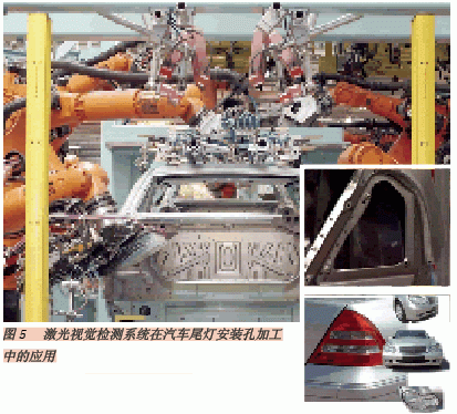 除此之外,激光視覺檢測系統還被廣泛應用于焊裝生產中,如門蓋裝配、前端切削焊接以及車身后部后尾燈定位孔的形成等。