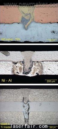 圖2、混合金屬焊接:Cu-Al, Ni-Al, Ni-Ti-Ni