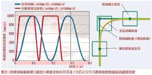 機(jī)器人控制的Remote激光焊接技術(shù)除了利用掃描設(shè)備控制激光射束的運(yùn)動(dòng)之外,還要求激光切割保護(hù)氣體割炬具有很高的動(dòng)態(tài)性能。與沒(méi)有附加坐標(biāo)控制的傳統(tǒng)激光切割割炬相比較,新技術(shù)可節(jié)約工時(shí)60%左右。 隨著金屬激光加工技術(shù)的不斷進(jìn)步,現(xiàn)在使用高能量的激光切割金屬材料時(shí)通常可以使用比5年前要高許多的進(jìn)給速度。但由于移動(dòng)部件質(zhì)量較大,即使是高動(dòng)態(tài)性能的激光切割設(shè)備在直線切割時(shí)可能使用的進(jìn)給速度也達(dá)不到大多數(shù)輪廓切割的理論速度。例如,利用激光切割設(shè)備切割電動(dòng)機(jī)轉(zhuǎn)子、定子鐵芯等電氣鋼板時(shí),平均切割速度為20m/min;而理論上可以實(shí)現(xiàn)的激光切割的極限進(jìn)給速度則為100m/min(見(jiàn)圖1)。隨著激光射束質(zhì)量的進(jìn)一步研發(fā)和提高,這一差異還將明顯地增大。因此,即使允許以很高的進(jìn)給速度進(jìn)行激光切割的線性驅(qū)動(dòng)導(dǎo)向機(jī)構(gòu),但由于動(dòng)態(tài) 性能設(shè)計(jì)方面的原因,其多過(guò)渡線、小形輪廓軌跡控制可以實(shí)現(xiàn)的進(jìn)給速度都明顯受到了限制。 由于加速度引起的加速度增量是一個(gè)重要的影響因素,它使得動(dòng)態(tài)的軌跡控制受到了很大的影響。加速度的變化不是跳躍式的變化,而是隨時(shí)間增加而提高,并受加速度增量的影響,這就導(dǎo)致了在較短的切割輪廓中,機(jī)床坐標(biāo)軸常常達(dá)不到其最高的加速度值,不能實(shí)現(xiàn)按照最高加速度進(jìn)行加速運(yùn)動(dòng)。 保證不發(fā)生沖撞的加速度增量極限值一方面受驅(qū)動(dòng)裝置本身的影響,另一方面也是由考慮了外部因素而設(shè)定的機(jī)床參數(shù)極限值所決定的。外部條件對(duì)加速度提高的限制是非常必要的,以便降低機(jī)床機(jī)械振動(dòng)對(duì)驅(qū)動(dòng)系統(tǒng)的影響,避免對(duì)激光頭的導(dǎo)向精度產(chǎn)生負(fù)面作用。 受加速度限制的驅(qū)動(dòng)進(jìn)給量 目前,激光加工設(shè)備都是通過(guò)進(jìn)給量對(duì)各個(gè)坐標(biāo)軸應(yīng)執(zhí)行的加速度加以限制。由于它的作用,在大多數(shù)切割輪廓情況下,激光加工機(jī)床坐標(biāo)軸的運(yùn)動(dòng)速度很難達(dá)到事先規(guī)定的極限速度。圖2所示為帶有和不帶有坐標(biāo)軸進(jìn)給加速度增量在運(yùn)動(dòng)距離限制與加速度限制時(shí)加工工件直角處的速度關(guān)系曲線。在2001年的工業(yè)機(jī)器人焊接研究中,IWS霍倫霍夫研究院通過(guò)掃描系統(tǒng)在機(jī)器人中的集成時(shí)對(duì)這個(gè)問(wèn)題進(jìn)行了解決;并明顯地提高了機(jī)器人的加工速度和加工質(zhì)量。在激光焊接時(shí),與激光切割有所不同:在各個(gè)焊接點(diǎn)處盡可能保持恒定的生產(chǎn)加工速度和盡可能短的定位運(yùn)動(dòng)時(shí)間。如今的機(jī)器人Remote焊接設(shè)備已經(jīng)完全把機(jī)器人(空間、靈活性)和掃描系統(tǒng)(動(dòng)態(tài)、精度)的優(yōu)點(diǎn)經(jīng)智能化的軌跡運(yùn)動(dòng)和自動(dòng)化控制結(jié)合在一起。 激光切割時(shí),即使是在切割復(fù)雜輪廓的工件時(shí)也應(yīng)達(dá)到技術(shù)允許的極限速度,以便充分挖掘激光技術(shù)的生產(chǎn)潛力。在將機(jī)器人控制Remote焊接設(shè)備的技術(shù)轉(zhuǎn)移到激光切割機(jī)器人中時(shí),必須要做進(jìn)一步的技術(shù)改進(jìn),即利用掃描技術(shù)附加高動(dòng)態(tài)性能的激光切割保護(hù)氣體對(duì)激光射束運(yùn)動(dòng)進(jìn)行控制。激光切割保護(hù)氣體保護(hù)著激光射束聚焦在工作區(qū),以保證可靠的熔化材料。 經(jīng)過(guò)多年的研究,目前的Remocut技術(shù)已經(jīng)含有了多種不同的Remote切割工藝方法,根據(jù)被切割材料、使用的切割氣體等可分為無(wú)保護(hù)氣體的Remote非金屬材料切割(Remocut-NM)、不使用保護(hù)氣體的、金屬板材厚度0.7mm的Remocut金屬材料切割(Remocut-M)和使用保護(hù)氣體的、金屬板材厚度4mm的Remocut保護(hù)氣體金屬切割(Remcut-MG)。 降低主坐標(biāo)運(yùn)動(dòng)軸的加速度最大峰值 在加工用光學(xué)系統(tǒng)中,集成一套輔助的坐標(biāo)軸系統(tǒng)可降低主坐標(biāo)運(yùn)動(dòng)軸的加速度增量峰值和進(jìn)給加速度峰值。切割時(shí),沿主坐標(biāo)軸的運(yùn)動(dòng)是按照工件幾何輪廓精確軌跡進(jìn)行的硬過(guò)渡運(yùn)動(dòng),與此同時(shí),生產(chǎn)和加工光學(xué)系統(tǒng)中集成的輔助坐標(biāo)系(掃描系統(tǒng)和噴嘴系統(tǒng))可對(duì)理論軌跡的偏差進(jìn)行補(bǔ)償校正。這樣,在關(guān)鍵的過(guò)渡點(diǎn)范圍內(nèi)主坐標(biāo)軸的運(yùn)動(dòng)只需略微減速便可在其動(dòng)態(tài)性能的范圍內(nèi)實(shí)現(xiàn)柔和的軌跡過(guò)渡。不但大大縮短了切割加工工時(shí),還明顯降低了整個(gè)設(shè)備的機(jī)械負(fù)載,有效地提高了相關(guān)元器件的使用壽命。 #p#分頁(yè)標(biāo)題#e# 此外,切割保護(hù)氣體噴嘴的動(dòng)態(tài)性能還決定了附加系統(tǒng)(激光射束控制和噴嘴輔助控制)的機(jī)械性能。利用直接