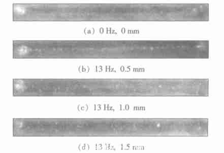 2. 1 光束擺動對激光焊接氮氣孔的影響圖2 所示的是不同擺動規范下激光焊接焊縫氮氣孔情況(X 射線透視圖) 。由圖2 可以發現,光束擺動可以起到消除氮氣孔的作用,在其它條件不變的情況下,隨著擺動頻率的增加,焊縫中的氣孔減少。