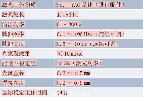 激光器系統主要由激光工作物質、泵浦氙燈、聚光腔及諧振腔組成。振鏡式激光焊接機激光工作物質為YAG棒。主要參數如表1所示。