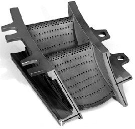 2 渦輪機的一個定子葉片(西門子發電機), 表面等離子濺射的熱隔離涂層材料YSZ (氧化鋯)