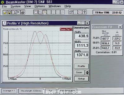 BeamMaster系統可以測量小的光束,甚或是聚焦以后的光束,最小可測量的光束直徑是3μm,分辨率