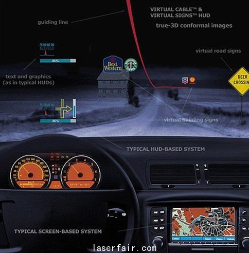 一條紅色3D激光線位于駕駛者眼前的擋風(fēng)玻璃上,這條激光線一直盤旋在道路上方,駕駛者僅需遵循這條動態(tài)3D激光線的方向行駛即可,從而使汽車駕駛變得更加簡單容易。