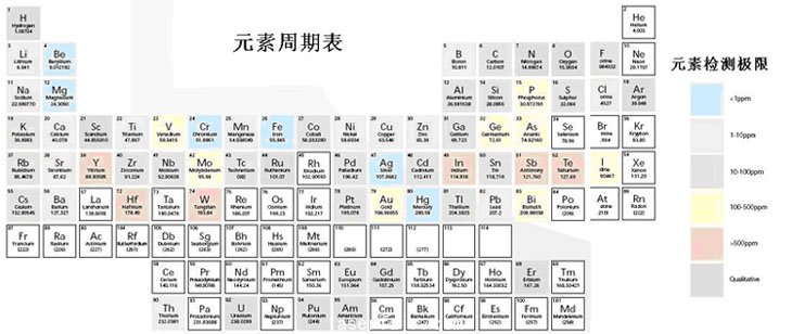 AvaLIBS 可 測量的主要材料成分 AvaLIBS 系統的各種元素的檢測極限如下圖所示。 |