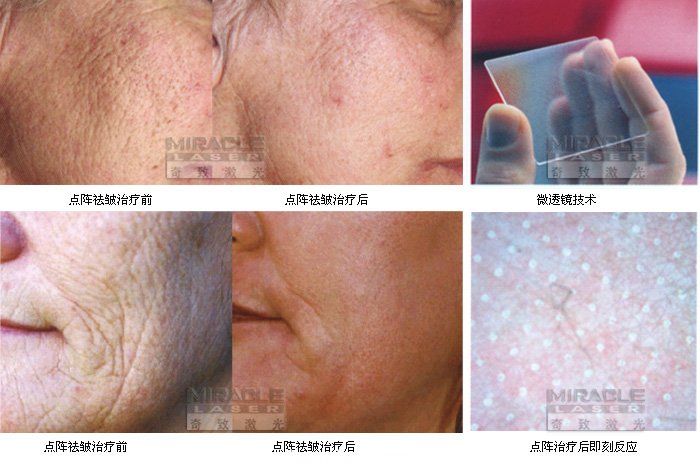 MCL30點陣大師發出的鉺激光在皮膚打出密集有序的微孔,直接作用于真皮組織。表皮損傷軟小,使患者治療時更舒適,恢復期短。與傳統全面部或大面積治療相比,達到類似的臨床效果,可有效刺激膠原新生,祛除皺紋,緊致皮膚。