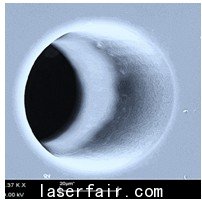 圖1:50um厚度的塑料板加工出的孔徑60um的通孔,波長308nm,能量密度800mJ/cm2, 200脈沖