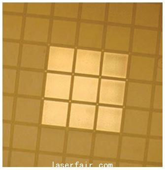 圖4. 248nm激光脈沖對(duì)藍(lán)寶石上的氮化鎵進(jìn)行激光剝離(一個(gè)脈沖激光光斑一次覆蓋9個(gè)芯片)。