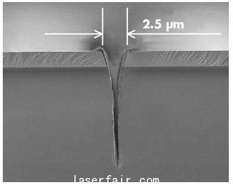 圖5. 氮化鎵-藍(lán)寶石晶圓激光劃片的切口寬度2.5微米。