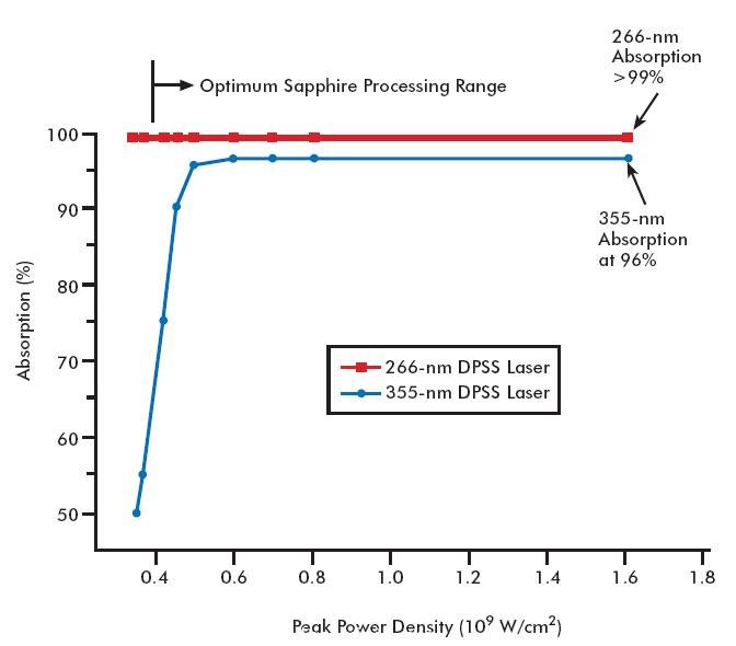 圖6. LED藍(lán)寶石對(duì)紫外激光的吸收曲線。