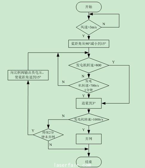 圖7 風力機起動變槳控制程序流圖