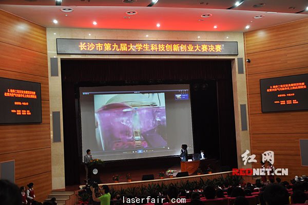 在今日湖南省中醫藥大學的決賽現場上,各路學子不斷拋出新鮮有趣又實惠實用的好點子,引得現場觀眾贊嘆聲此起彼伏。這些項目中,有用PC和無線技術來控制煙花爆竹的控制器,有能設計成各種裝飾板材的納米二氧化碳負載型活性炭室內空氣凈化材料,有能在游樂場防止小寶寶走失的“狼群”目標定位跟蹤系統,有在炎熱夏天為汽車降溫的外置式太陽能“冷裝置”,大學生們展現了不俗的發明能力。