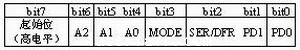 bit7指明發送命令開始,高電平有效。A2:A0用于選擇數據輸入通道,101選擇X坐標測量,001選擇Y坐標測量。MODE將內部模數轉換器的分辨率定義為8位(MODE=1)或12位(MODE=0)。SER/DFR為單端/雙端參考電壓選擇位。PD1:PD0根據省電模式的需要進行選擇設置。這些命令控制位的設置將在程序代碼部分得以應用。