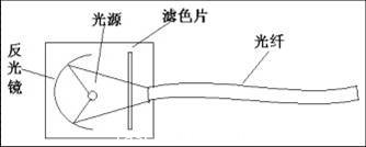 光纖照明系統(tǒng)是由光源、反光鏡、濾色片及光纖組成,如下圖所示: