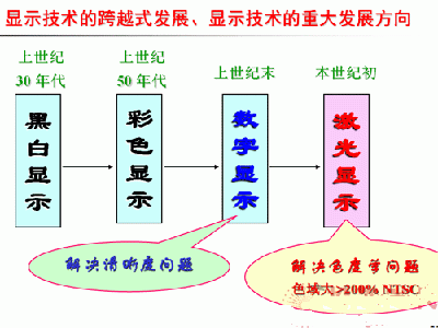 06年開始,采用LED固態光源技術的液晶顯示器、彩電和數字投影機開始逐步進入人們的視線。顯示光源技術實現了從熒光光源到半導體光源的革命。同時,LED這種新型光源技術還被應用在了室內室外照明、舞臺裝飾照明等領域。不過,LED光源所取得的成就,自2011年開始正在被另一種技術的光環所淹沒。他就是激光。
